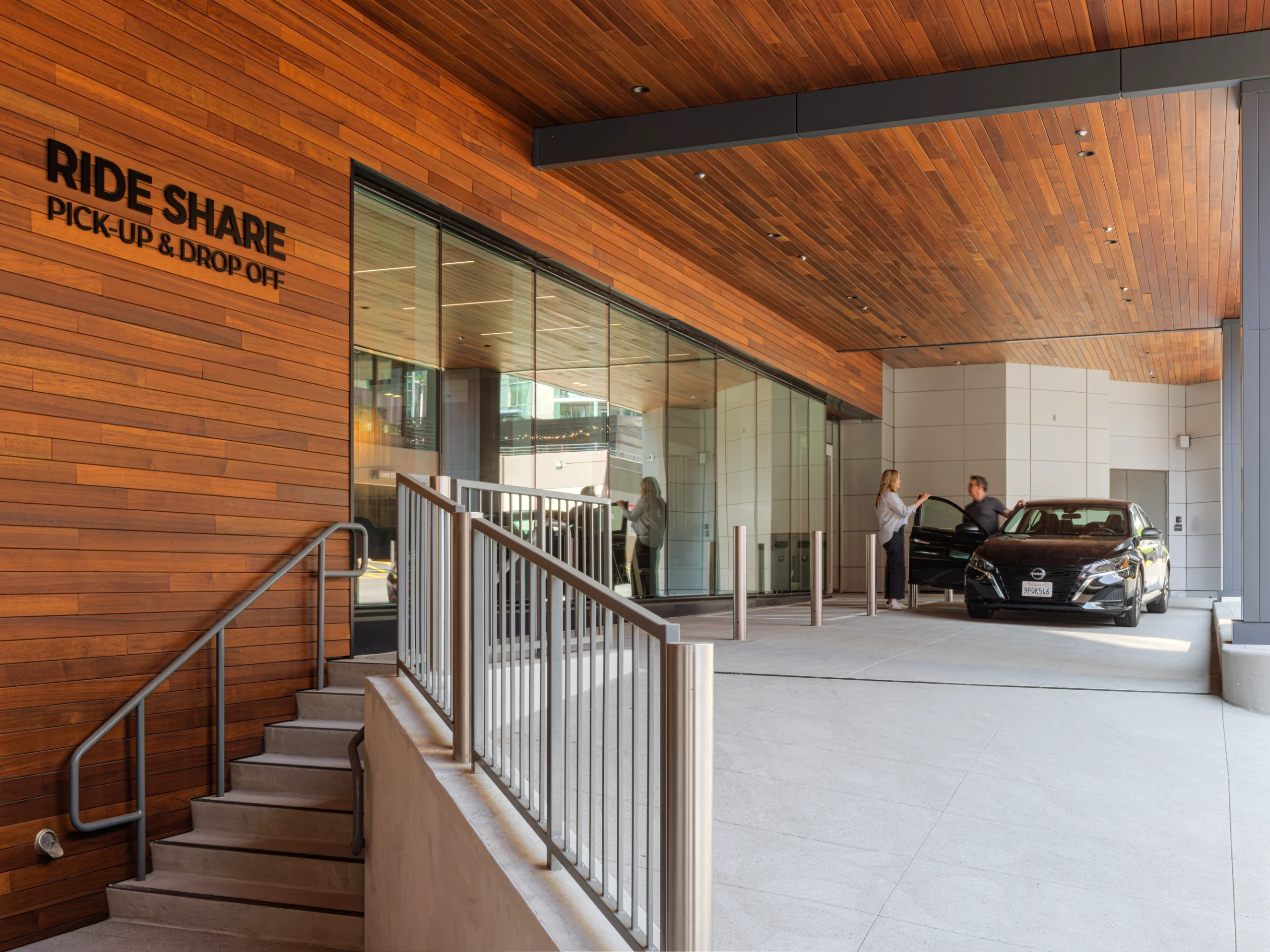Garage Elevators: 3 garage transfer elevators up to the Level 1 lobby, Ride Share lounge, and Level 2 fitness amenity